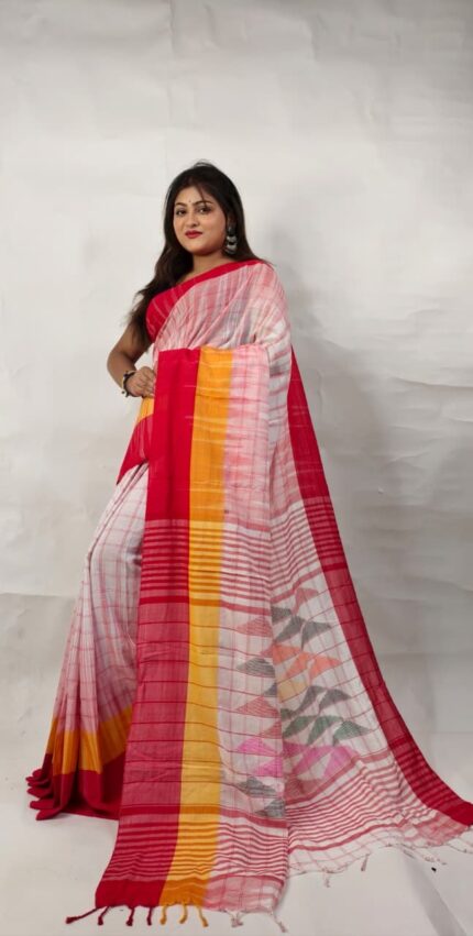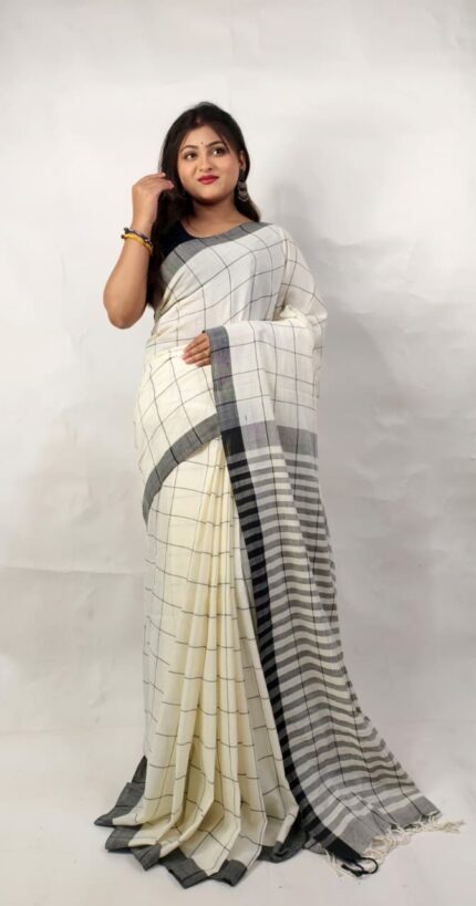 Khadi Cotton Manjuri Check Saree With B.P. Pure Khadi By Khadi Saree. All Saree Stype Design. Soft Quality Saree. The