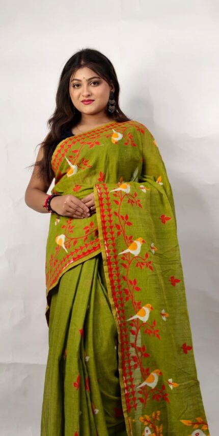 New Khadi Pakhi & Lota Buti Design Saree With B.P.