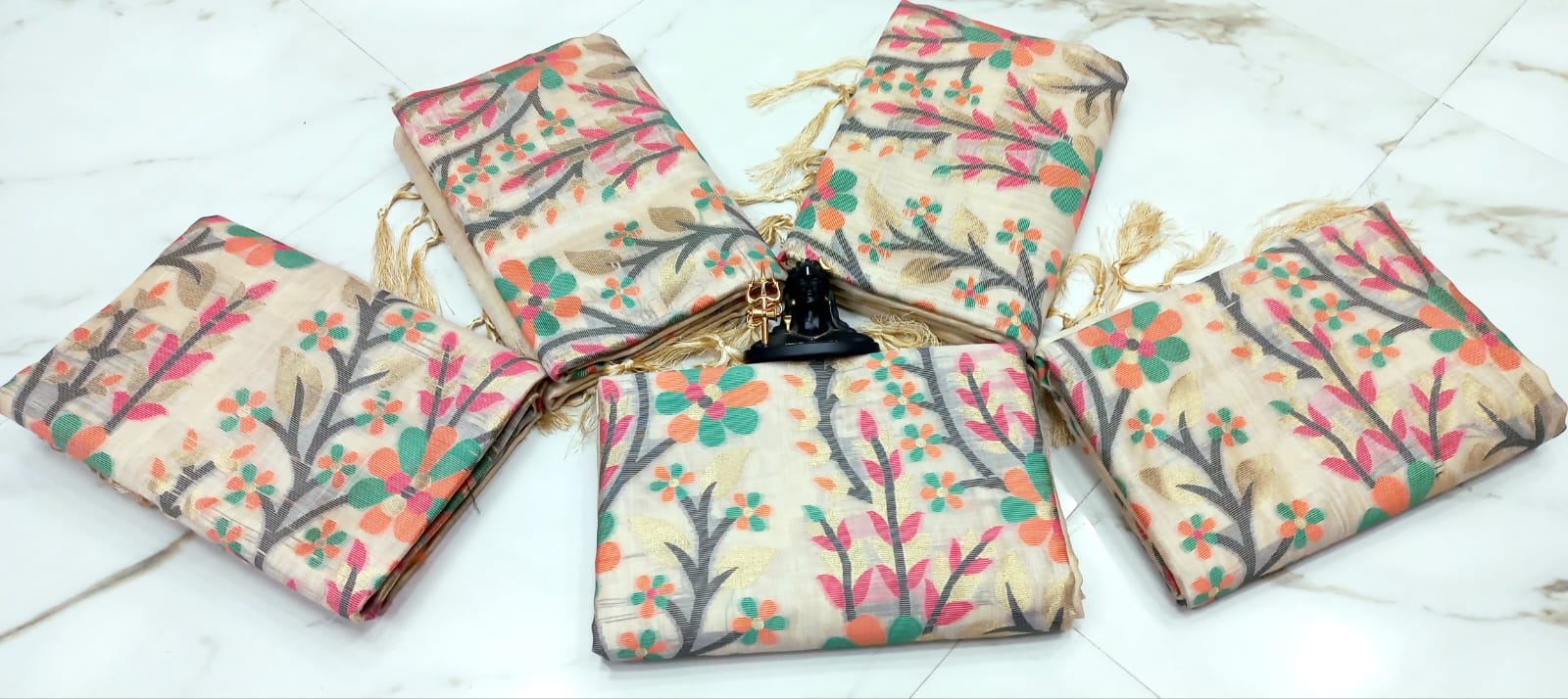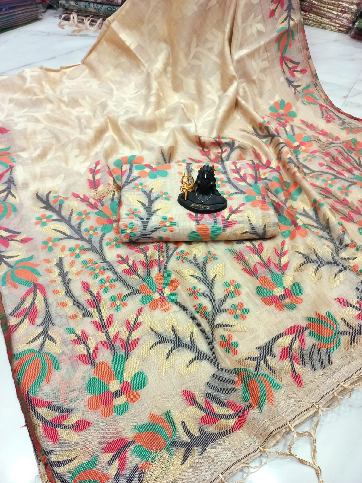 Tassar Tantuja Lota Ful Design Saree With Worked B.P.